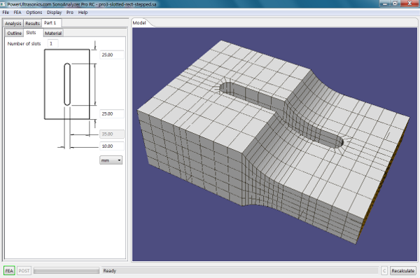 SonoAnalyzer Pro slotted rectangular block sonotrode - user-defined profileSlotted Rectangular Block Sonotrode #3 with User-defined profile (Pro FEA)